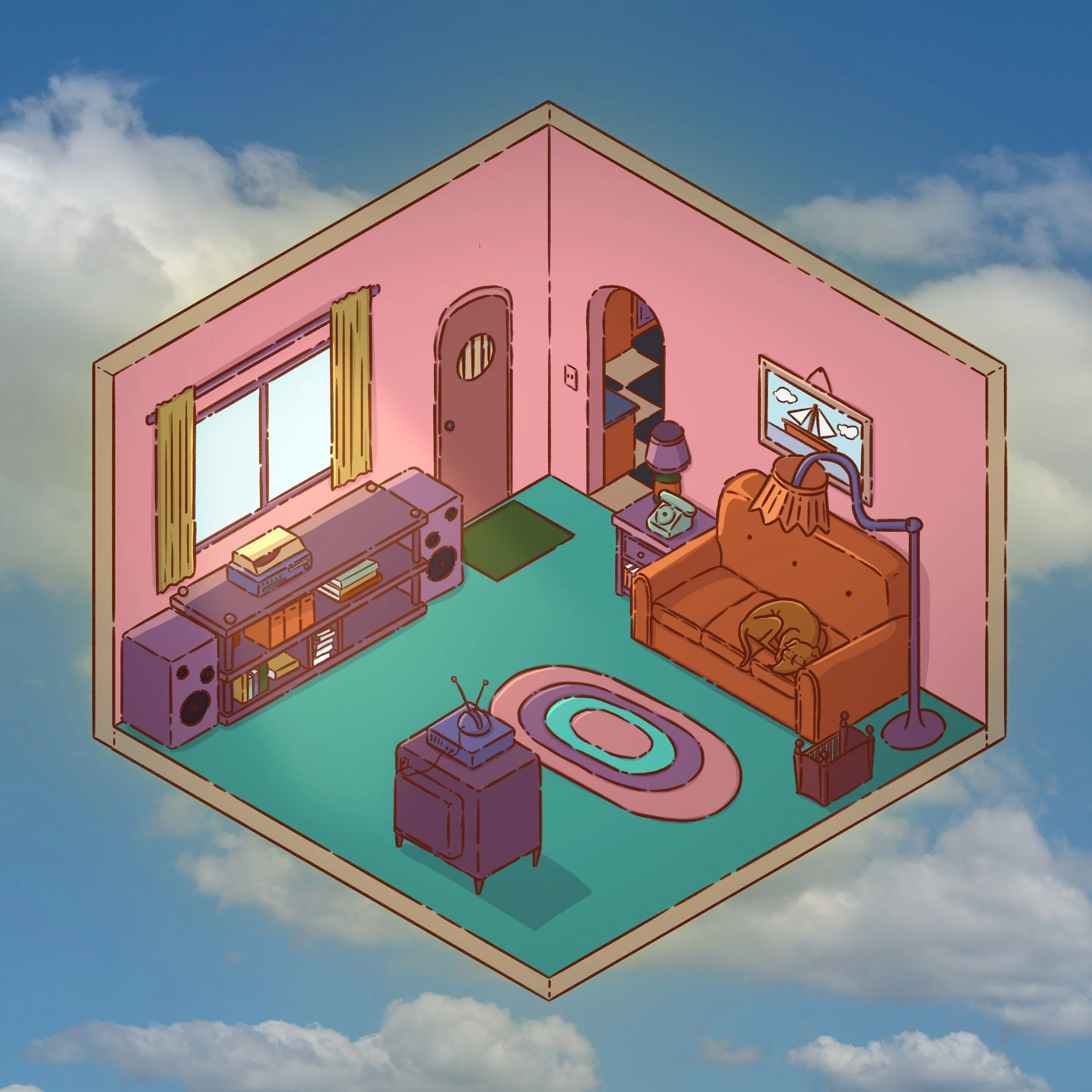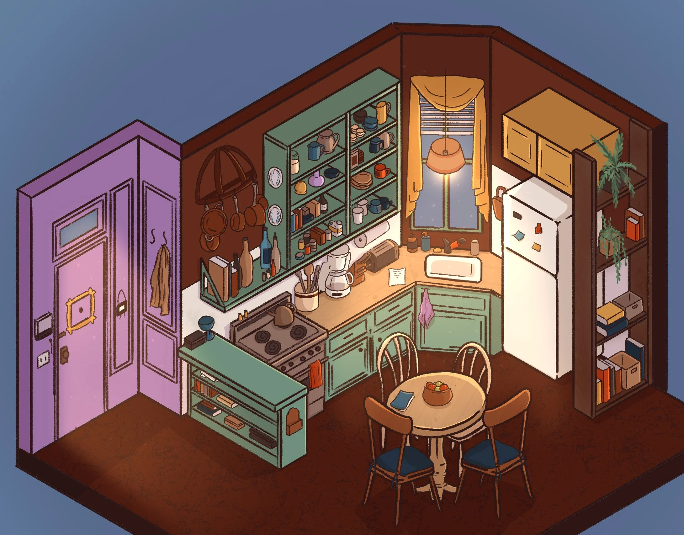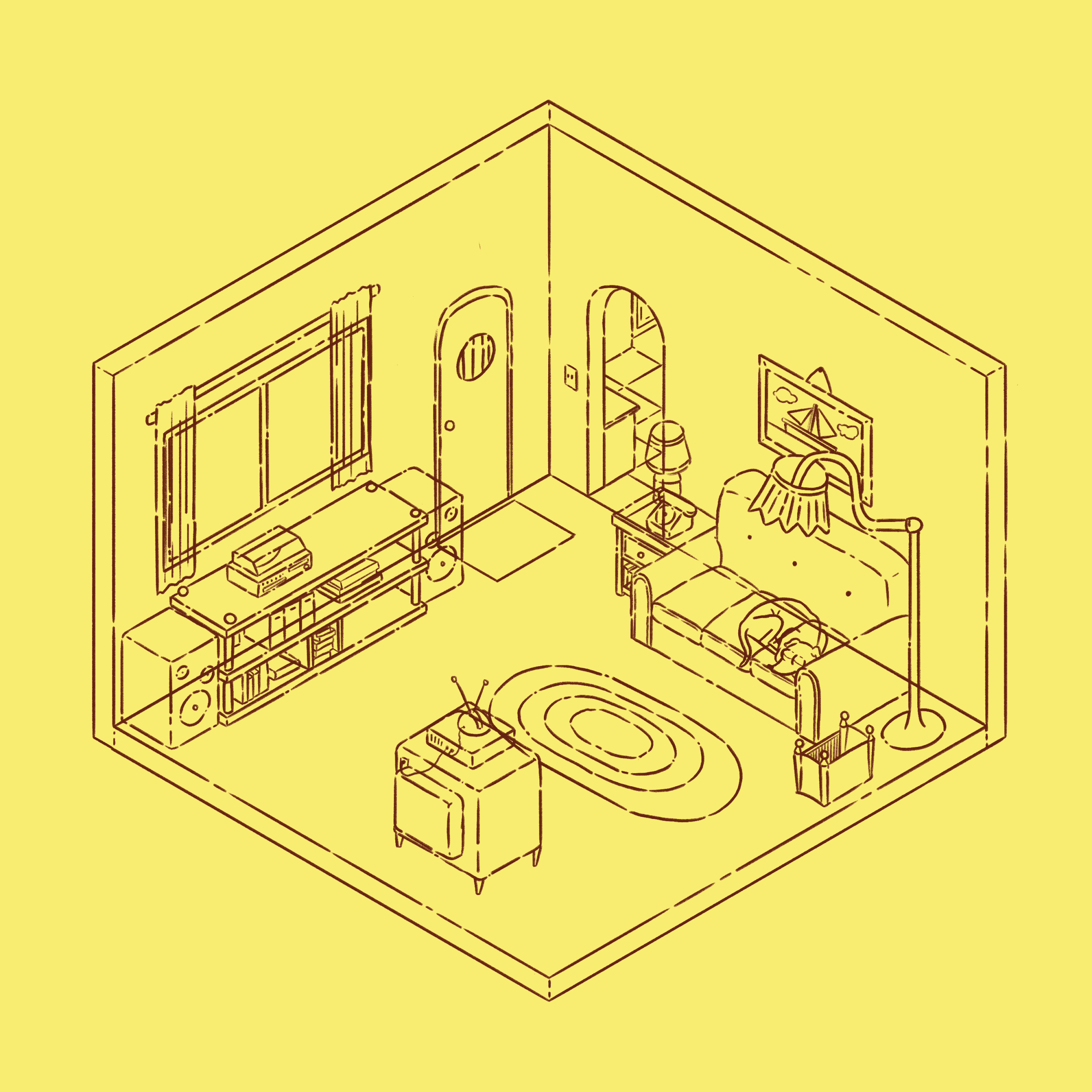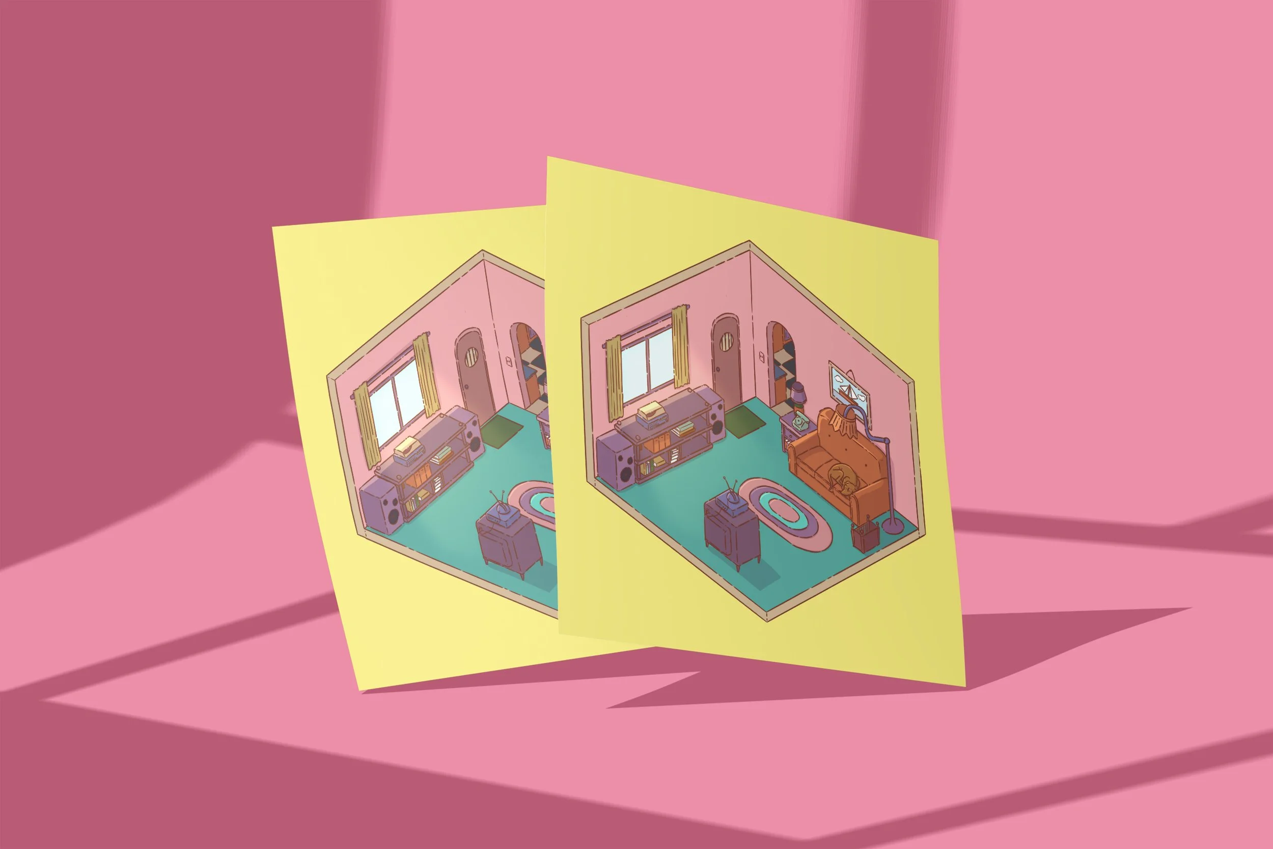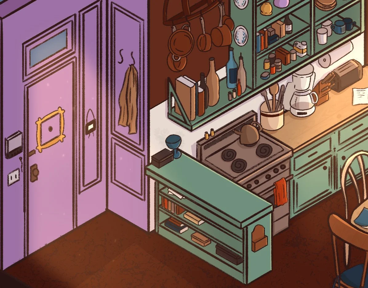 Dans mon temps libre, je me passionne pour l’illustration, que ce soit sur papier ou à travers des outils numériques. Ici, ce sont plusieurs créations de pièces isométriques réalisées avec Procreate. Inspirées de séries télévisées emblématiques ou de jeux vidéo, ces illustrations intègrent des clins d’oeil culturels qui renforcent l’immersion et la reconnaissance de ces univers.