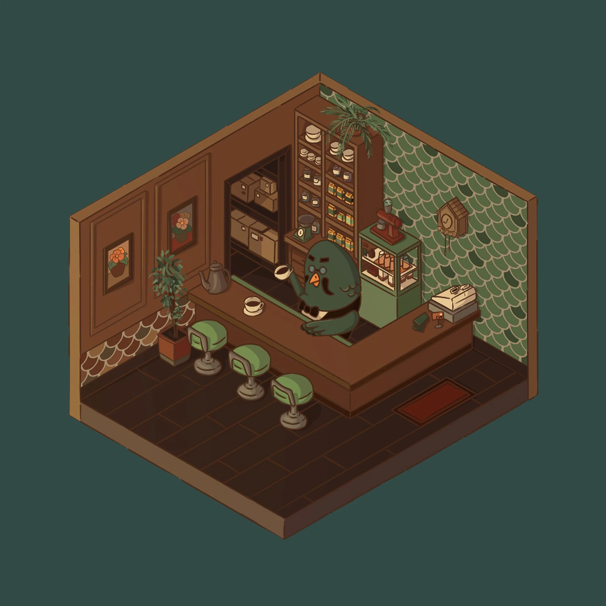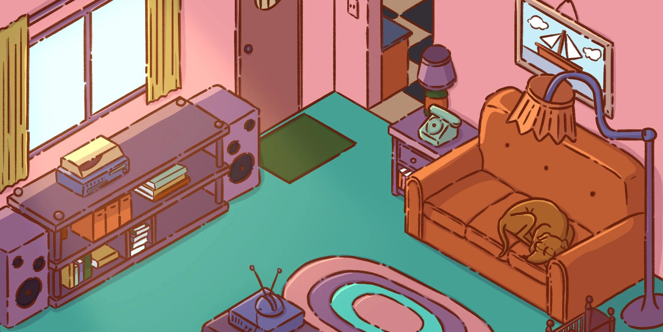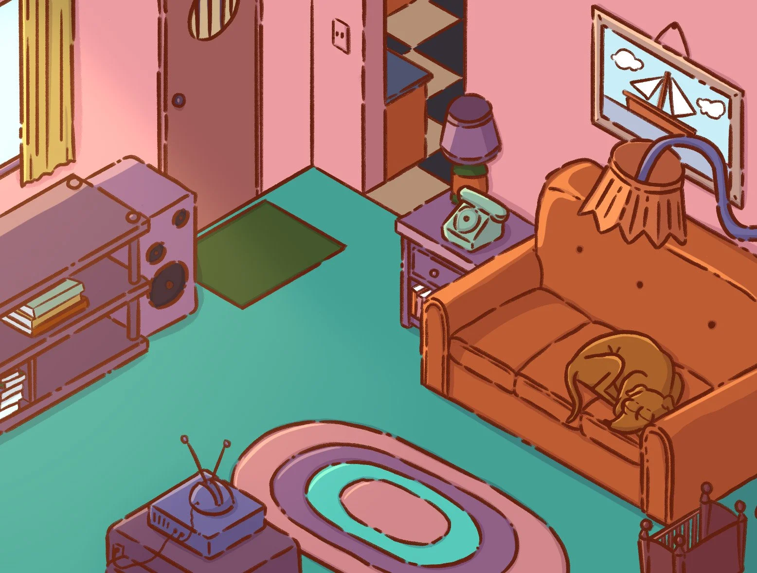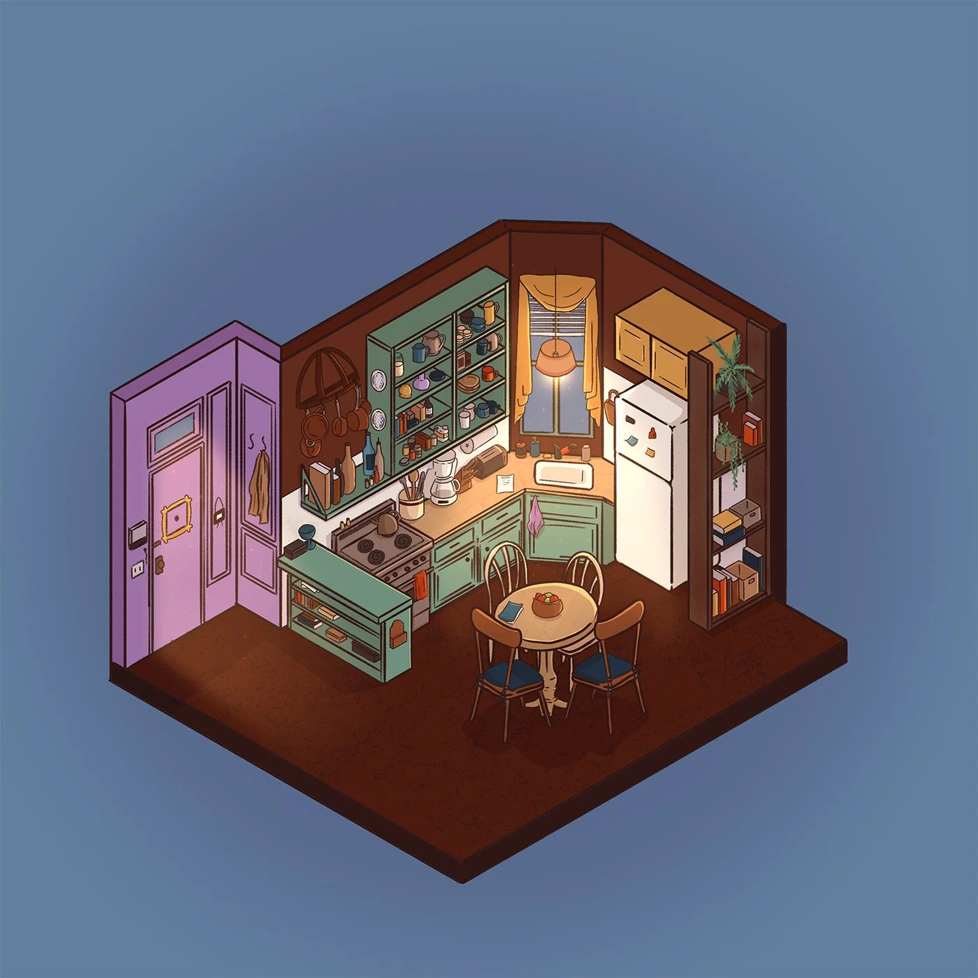 Dans mon temps libre, je me passionne pour l’illustration, que ce soit sur papier ou à travers des outils numériques. Ici, ce sont plusieurs créations de pièces isométriques réalisées avec Procreate. Inspirées de séries télévisées emblématiques ou de jeux vidéo, ces illustrations intègrent des clins d’oeil culturels qui renforcent l’immersion et la reconnaissance de ces univers.